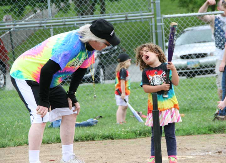 And that’s our Perry League, Yellow Springs’s T-ball program for all the community’s children ages 2–9 regardless of race, color, or creed, sexual orientation, ethnicity, spiritual inclination, ability or disability. We’re at Gaunt Park every Friday night from 6:30 to 8 p.m. Children can begin to play at any time and there’s no requirement to play every week. Come when you like, come when you can. We’ll be out there for the next seven Friday nights, till our final potluck, trophy-to-every-kid-who-shows-up night, Aug. 7. So, why don’t you come on out, have some fun with us? We’d love to have you.
