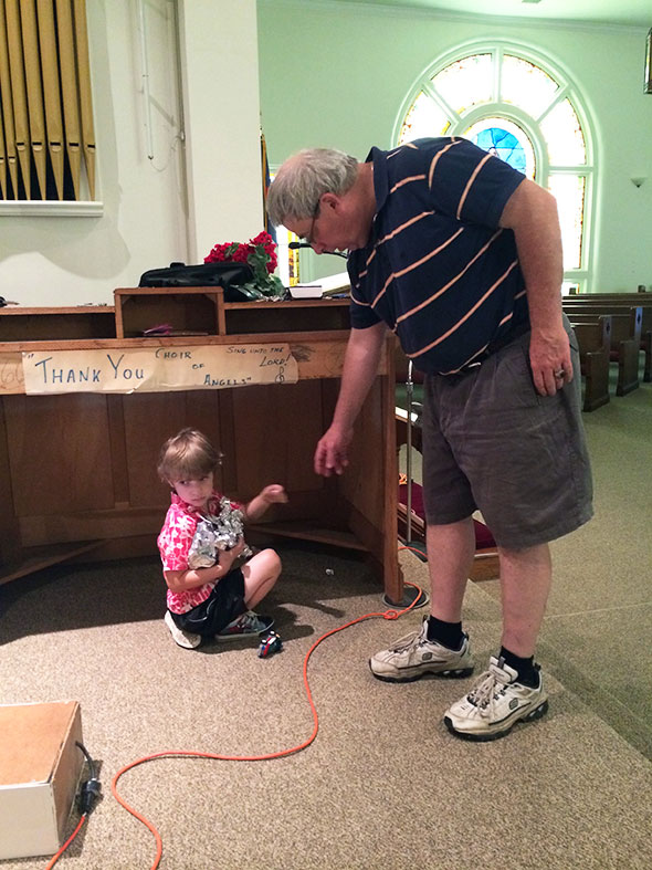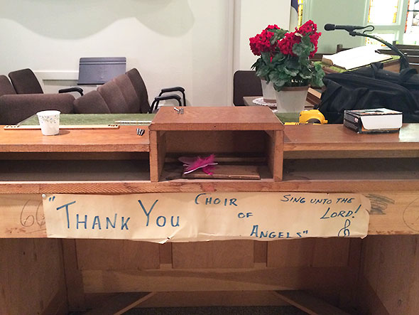 Earlier in the week, I posted the question to Facebook after seeing the workcrew’s selfie: “How many Methodists does it take to change a light bulb?” My friend and fellow choir member Carol Cottom replied. To wit, she said: “As many as it takes, but they’ll have some food while they are about it and take an offering at the end.”