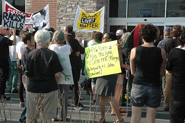 August 5th, 2015 was the one-year anniversary of the death of John Crawford III, a 22-year old man gunned down in the Beavercreek Walmart for holding a BB gun he picked up from a Walmart shelf. He was talking on his cell phone in the pet department, alone, when a shopper called 911 and reported he was pointing the gun at customers. Police were close by and stormed in, shooting Crawford immediately.