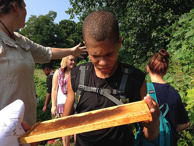 On Tuesday, Sept. 1, about 75 YSHS freshmen toured the Antioch College Farm and met with campus experts to learn firsthand about sustainable agriculture, farm-to-table programs, local food sourcing and beekeeping. The tour was one of several launch activities for the ninth-grade integrated curriculum, “Food for Thought,” in which students will explore food issues in all of their classes. The project will culminate in a communitywide Food Expo on Nov. 20 in Yellow Springs. Local farmers and chefs are currently being recruited to partner with students for the Food Expo. Those interested should contact Elisabeth Simon at YSHS.