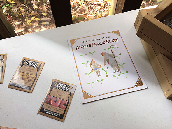 Seed School itself was populated by gardeners and producers ripe for recruitment. In addition to pollination and breeding techniques, we learned hands-on how to wet process tomato, cucumber, and squash. We built drying racks to process our seeds and discussed different ways of packaging and distribution. As we look forward, local resources like the Seed Lending Library offer further opportunities for individual gardeners and farmers to hone our skills and interact in the larger communal effort. Antioch College is inviting the community to help out with harvest this month. At the Winter Farmers Market, I’d like contribute by providing a spot for one or two Ohio-based seed companies to offer their products. In this role, I would be like the wizard in one of my favorite children’s books: Annu’s Magic Seeds. This wizard gave a farmer one magic seed. From this seed the farmer built himself a good life, a resilient life, leveraging the compounding growth of his produce. I love the math that the book demonstrates, but I now understand the true magic within the wizard’s seeds. Genetic diversity is the stuff that we need to get us through in a pinch. It is our essential heritage and the world’s unique source of resiliency, beauty, and trust.
