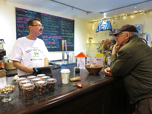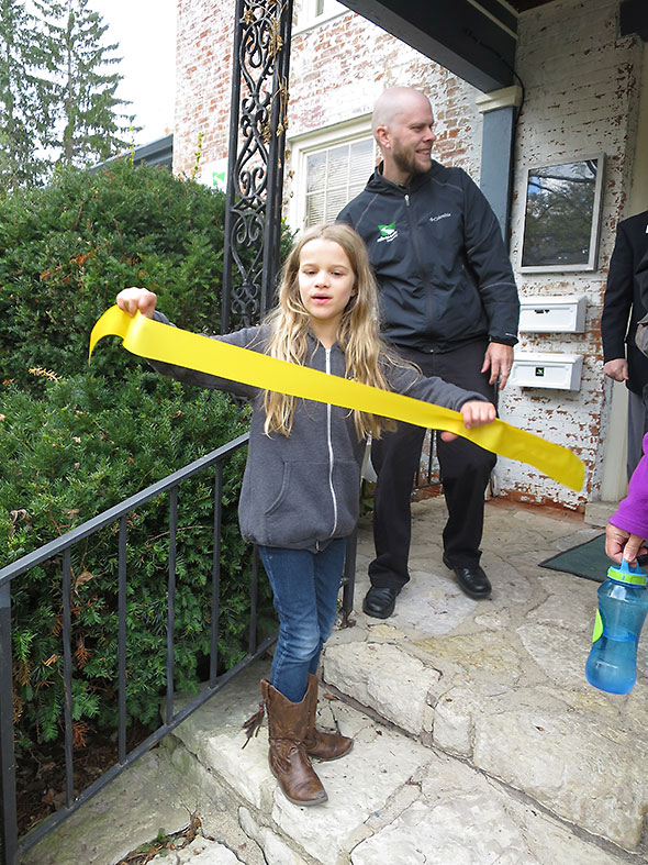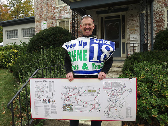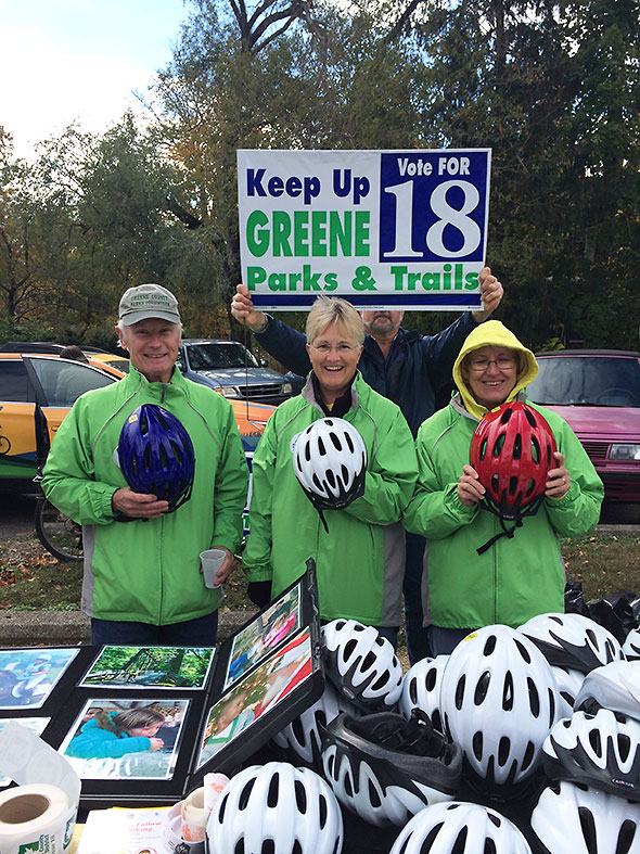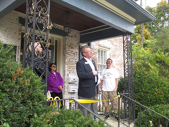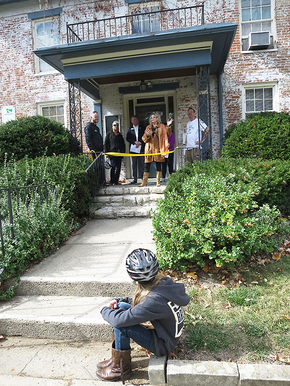 I heard the story of the Little Miami Scenic Trail in full on Saturday 17 October 2015 when I attended the open house and ribbon cutting for the new midwest regional office of the Rails to Trails Conservatory, 716 Xenia Avenue. The office employees—Eric Oberg, Director of Trail Development, and Brian Housh, Policy Manager—hosted a film screening of conservatory documentaries at the Little Art Theater in the morning and, in the afternoon, a health and fitness fair at their new offices. The ribbon cutting at the office drew Greene County Commissioner Tom Koogler, Xenia Mayor Marsha Bayless, Yellow Springs Chamber of Commerce Executive Director Karen Wintrow and Yellow Springs Village Manager Patti Bates.