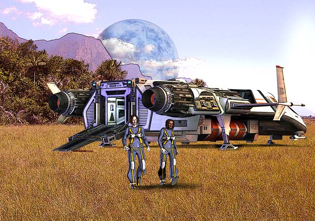In the role playing game Stars Without Number, players explore alien landscapes and outfit themselves with gear befitting a space adventurer. The game blasts its way into the Yellow Springs Library every second Thursday, from 4 to 5:30 p.m. (earthtime). (“Landfall,” Illustration by David Reddington, from the game)