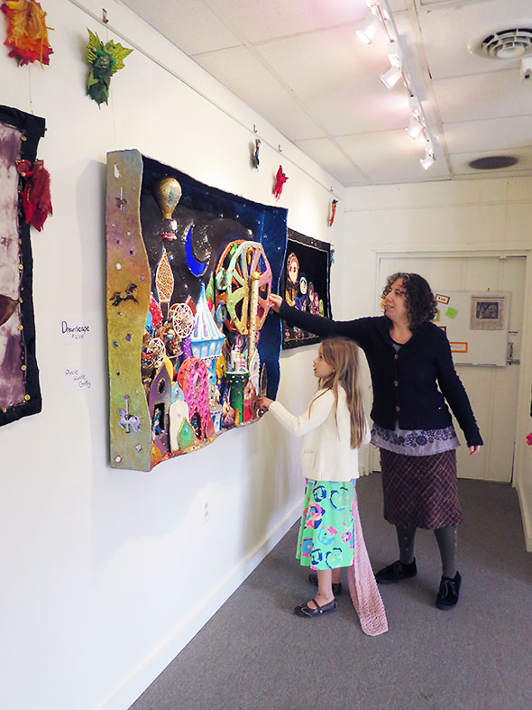 Since mid October, entering into the community gallery of the Yellow Springs Arts Council, 111 Corry Street, has been like entering into a mystic portal. The exhibit Explorations of Dreams and Memories is an exceptional collection of work by mixed media artist Sharri Phillips. If you have not yet been, today—Sunday between 1 and 4 pm—is the day to go.
