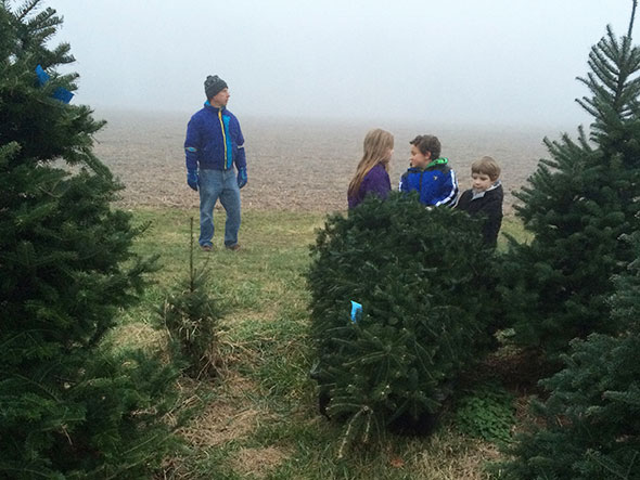 That’s not to say that we’ve been patiently waiting at home. Rather we’ve struck out to meet the season halfway. While the weather may be waiting to kick in, the village is already in full winter holiday mode. We joined last week’s Santa Breakfast where we met the man in red for a morning of pancakes, crafts, and Christmas carols. We then headed out to Carl and Dorothy Young’s Christmas Tree Farm to hunt for evergreens.