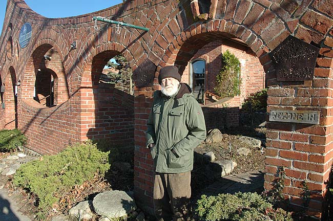 Longtime local artist Alan Macbeth was honored on Saturday with the Village Inspiration & Design Award, or VIDA, presented by the Arts and Culture Commission. Macbeth was recognized for his ongoing work on the unique Oten Gallery, which was described as a Yellow Springs “icon.” Macbeth has worked on the brick structure for almost 50 years. (photo by Diane Chiddister)