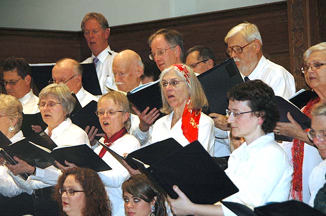 The First Presbyterian Church sanctuary was filled to overflowing on Sunday night, when the Yellow Springs Community Chorus and the Yellow Springs Chamber Orchestra joined forces under the direction of James Johnston to present a holiday concert of the music of Mendelssohn and Bach. Shown above are chorus members performing the classic “Magnificat” by Bach.