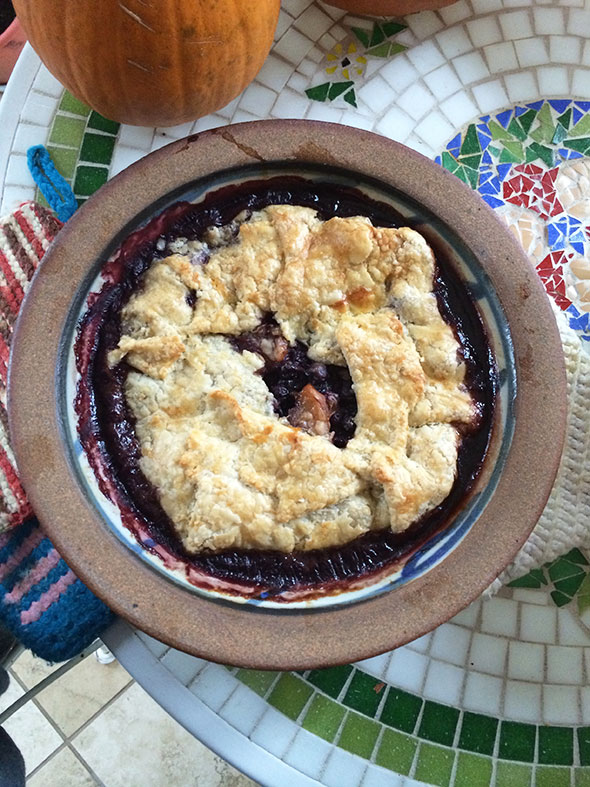 In two days, we make a second batch of pie crust—using the same organic flour—and create a crostata that achieves the same marvelous crispy crust. The crust embraces a bubbly blueberried sauce which is seasoned to an even richer depth for the days’ wait.