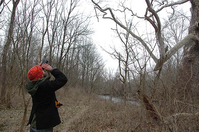 This reporter tagged along with Amrhein, who grew up in Yellow Springs and attended the revived Antioch College for a couple of years as a literature major. She and her partner moved to St. Louis for a while, she said, and had recently moved back to the village. Somewhere in the midst of these migrations, Amrhein discovered a love for birds.