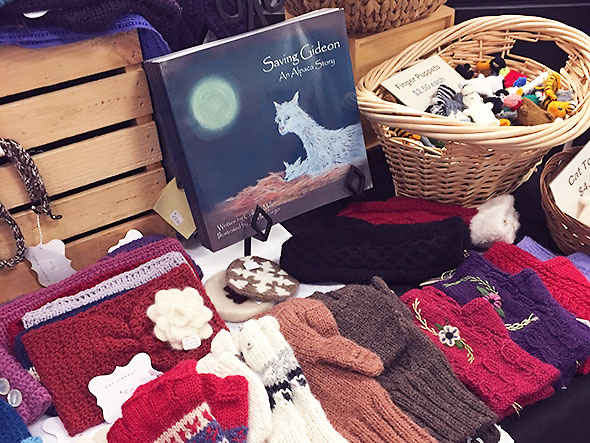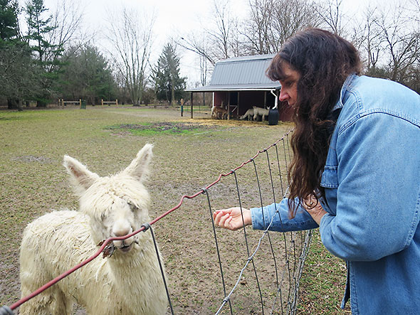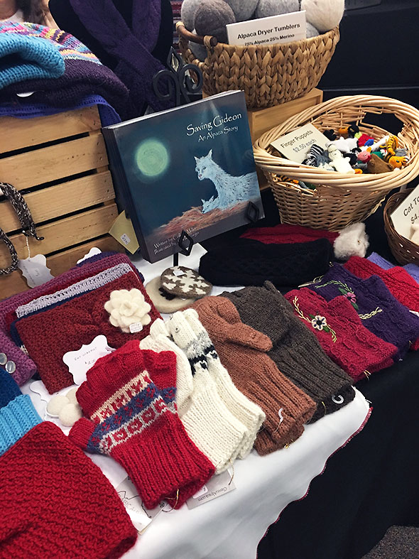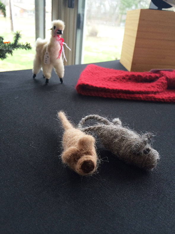 Among my duties as market manager is bringing in new vendors and fitting them into the mix. A new vendor joins the winter market crew this year: Purdy Lil Suri Alpaca Farm. For over a year now, I’ve been looking for a local textile vendor…one that might bring winter hats, gloves, and socks. Collene and Tom Miller answered the call. They raise alpacas in Huber Heights OH. As part of the vendor application process, I went to visit Millers at their farm just after Christmas. There I got a chance to meet the animals and to check out the Miller’s diverse line of products.