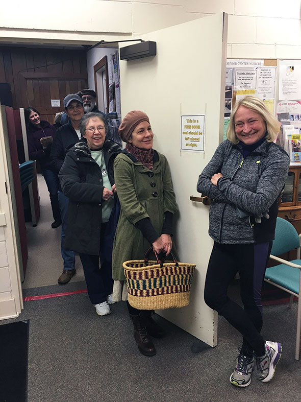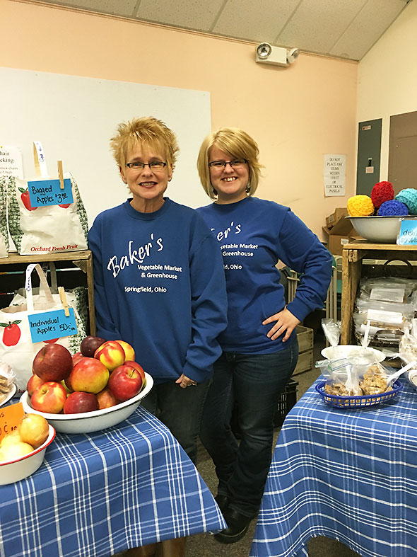 About a half hour into set up, customers start lining up. Hard core fans from the village and Dayton arrive as much as 45 minutes before the market opens. Market bags in hand, they wait patiently in the hallway between the senior center’s front offices and the Great Room. By 8:15am all the vendors have arrived and are putting the final touches on their tables.