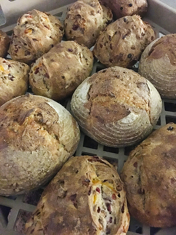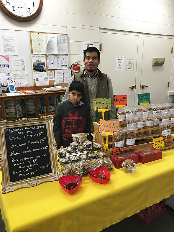 So far, eight vendors have returned to the winter market in 2016. Blue Oven Bakery brings up racks of fresh baked goods—croissants, english muffins, and bread loaves—from Cincinnati OH. The bakery anchors the market, and part of my job as market manager is to manage the line that forms in front of the bakery’s table.
