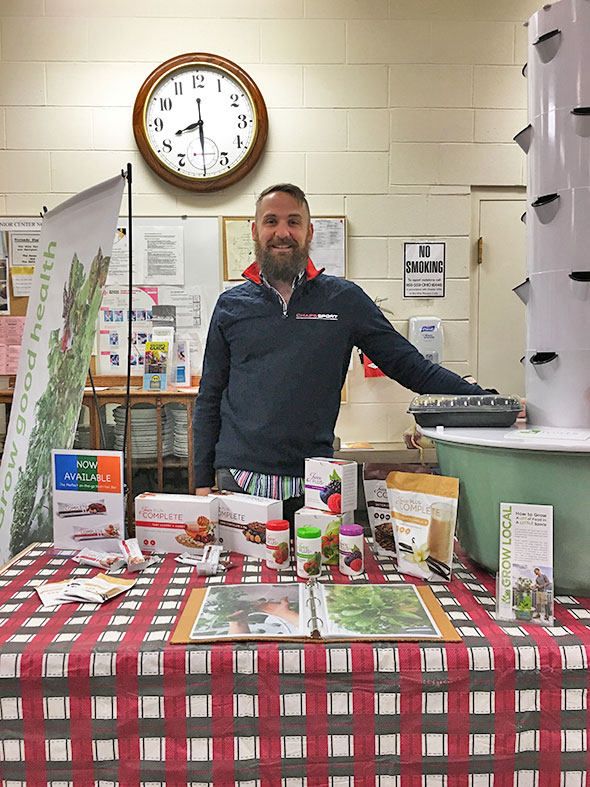Market customers love their winter greens and, if customers miss out on buying greens, they can take serious thought growing them indoors. Bradley Cambell of New Carlisle OH brings a fully assembled tower garden to market. He has helped several families get set up with their own aeroponic garden and worked with the Yellow Springs High School on the Food for Thought project to stand up two towers in the school hallways.