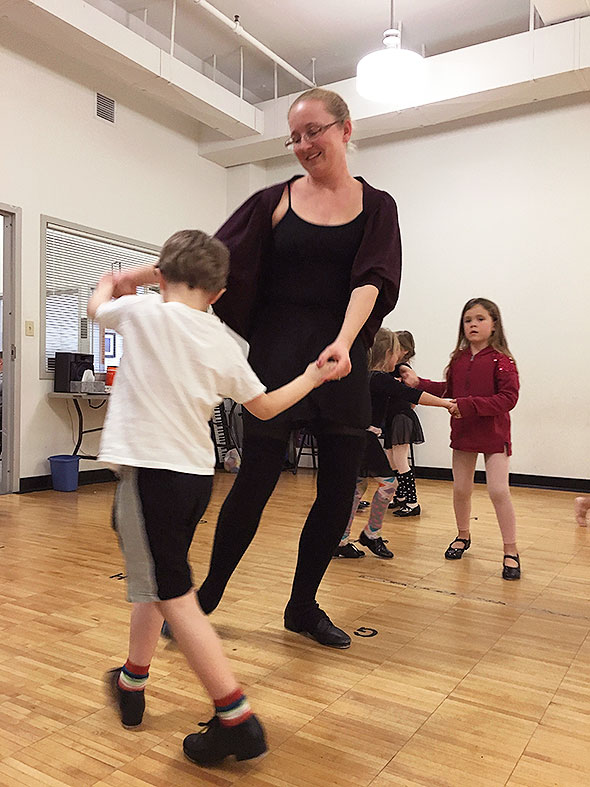 My husband Jeremy has been taking tap from Gary Geis himself for over three years. To better empathize with his young students learning physics for the first time, Jeremy began a wholly new adventure in tap dancing. He’s been a disciplined student bringing his metal shod shoes regularly to the school. While the kids are in class, you can find him nearby in a corner of the studio practicing tap combinations.
