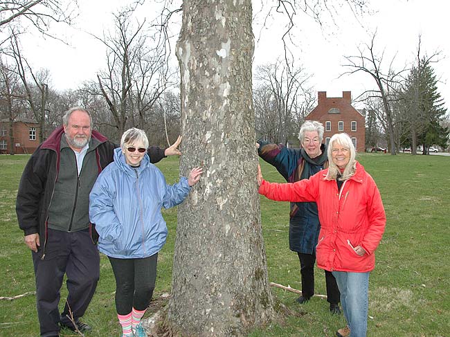 The Antioch Eco-Village Pioneers, a local cohousing group, claims 14 core members who are working to create a cohousing community (private homes with shared amenities) on the Antioch campus as part of the college’s intergenerational housing concept. Here, pictured on one proposed site, at the corner of N. College and Livermore streets, are four members of the group: Don Hollister, Pat Brown, Jane Baker and Sylvia Carter Denny. (Photo by Audrey Hackett)