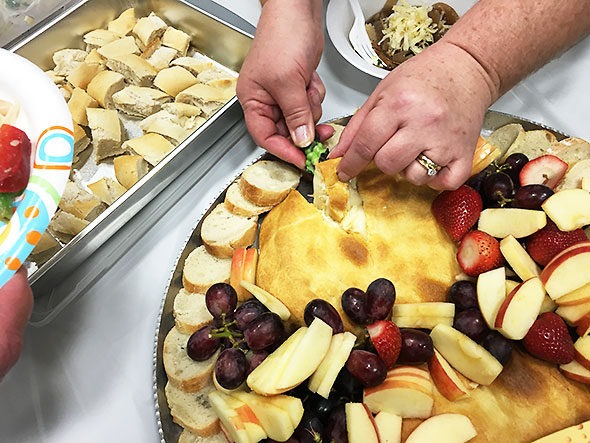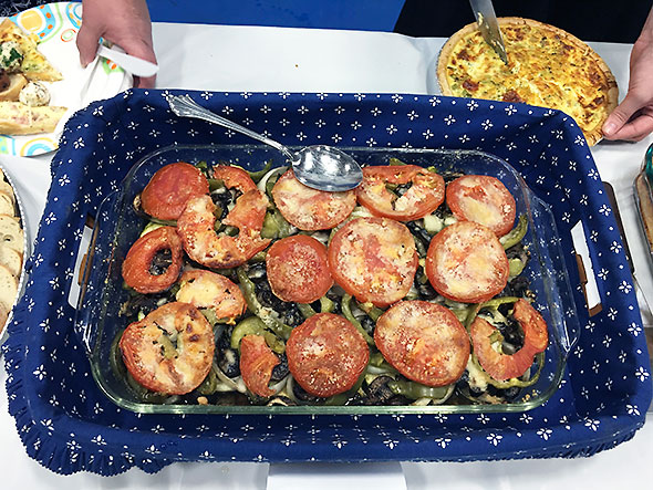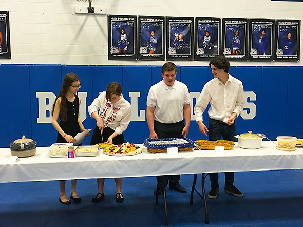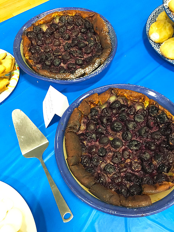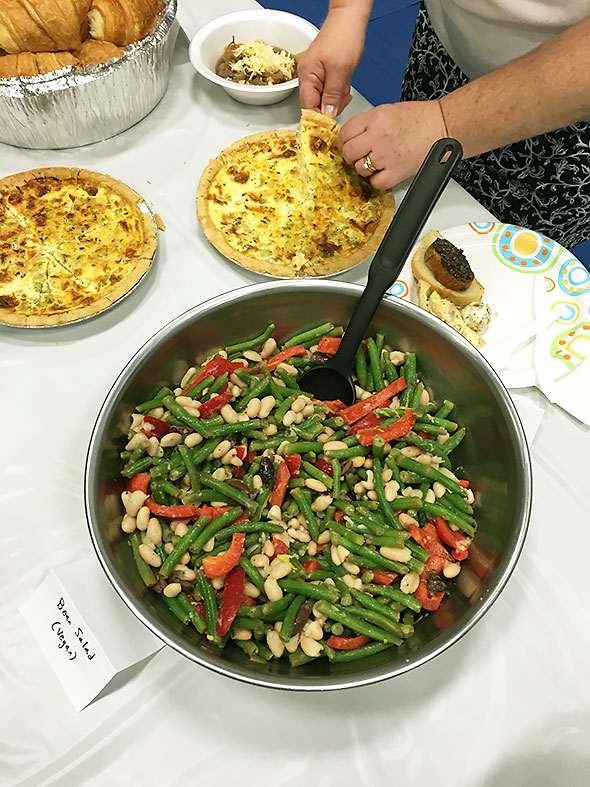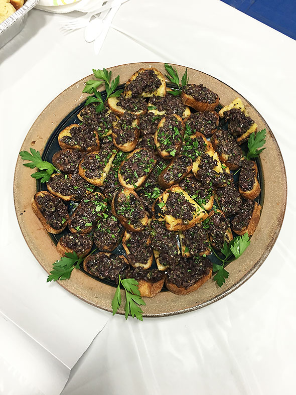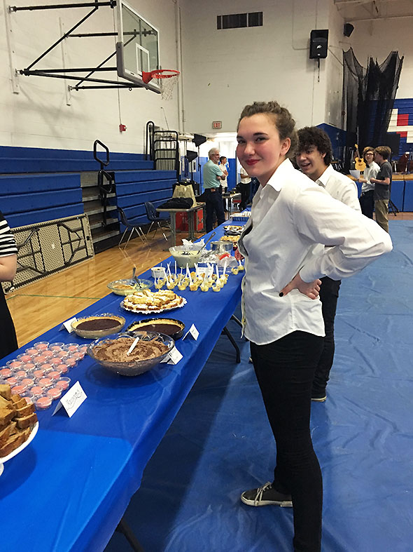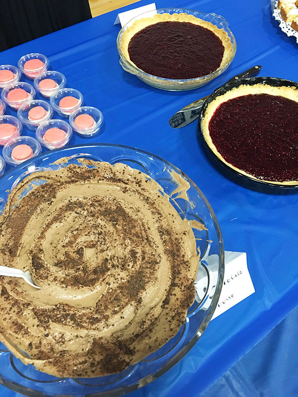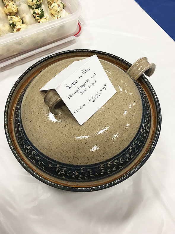 Inside students dressed in black and white loaded two long rows of tables with food. The first row contained savory items: soup, salads, sandwiches, and various baked items from the traditional French table. The second row offered sweets. The variety of food was impressive and so was its presentation.
