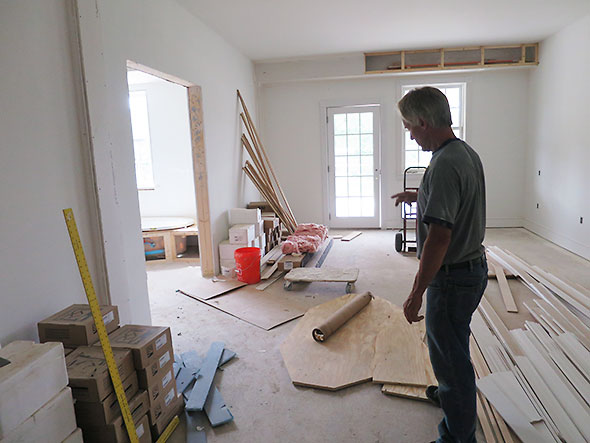 Untethered to the past, my son was delighted by what he saw beyond the fence. Fire-red tractors and gigantic cranes moved into the space, removing debris and trees, digging up dirt, delivering gravel, and pouring foundation. The crews saved wood recovered from the field for furniture, trim, etc but several trees were almost as blown out as the rotting timbers in the Barr House.