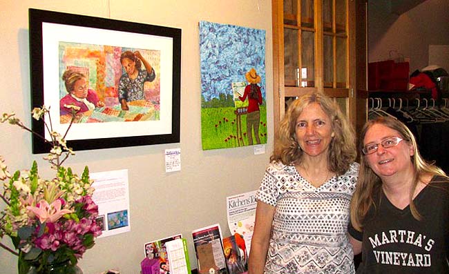 Geisel wrote that she enjoys both traditional pieced abstract quilts and representational landscape quilts. The Winds show includes both, with representational quilts showing poppies, a red barn, sunflowers, a mermaid and a painter standing in an open field.
