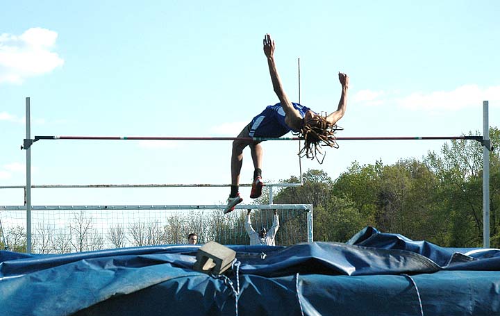 Both the boys and the girls got to work setting meet records. Julie Roberts broke a 29-year-old school record by winning the 300 hurdles in a record-smashing time of 46.36, with Charlotte Walkey also placing her name in the record books with a 2:26.49 first-place finish in the 800 meters. The previous record was set in 1996. Oluka Okia finished in first and set a record for the meet with his winning high jump leap of 6’6”. Kaner Butler got first place and set a meet record in the 300 hurdles, with a time of 39.78. Butler also won first place in the 110 hurdles in 15.65, and fellow senior Dyemeisha Banks was also a double winner with her victories in the 100 and 200 meters.