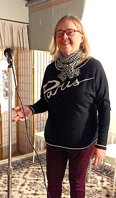 “It was a warm and friendly audience; people were really listening,” she said. “I felt I got energy back from them.” And she learned a lot about the art and craft of telling stories that evening. Storytelling is performance, she said, so elements like pacing and pauses, eye contact and “body English” (gestures and movement) are crucial to the story’s impact.