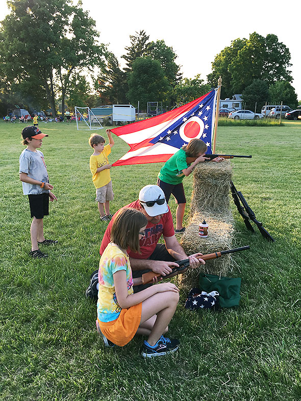For Father’s Day, the family also joined the boy scouts for a campout. We arrived to camp Saturday afternoon and took part in target practice: bow and arrow on one side of the field, air rifles to the opposite side. I gravitated to the air rifles possibly in part because of the muskets that feature in the first act of Hamilton but mainly because I was following in the wake of my son. He just turned six and, like many young men his age, is clearly obsessed with guns. Despite pointed dissuasion from his teachers from preschool on through elementary school, he constantly peppers his pretend play with the sound effects of rapid fire artillery. Here with the boy scouts I saw was an opportunity for him. I knew three things simultaneous: One! He’s gung ho to try and here he’d be well-supervised by super-safety-conscious coaches plus his bird-dog of a mother. Two! He’ll be frustrated once he discovers how hard it is to hit a target. Three! I’m about to amaze him with my skill.