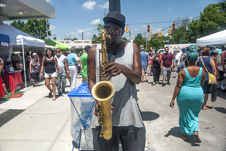Musician Tumust Allison from Dayton played a powerful sax during last Saturday’s Street Fair. Allison was one of numerous area performers who took their acts to the streets during the festival. Temperatures on Saturday hit 93 degrees, but the music was even hotter than the weather. Photos by Aaron Zaremsky and Diane Chiddister.