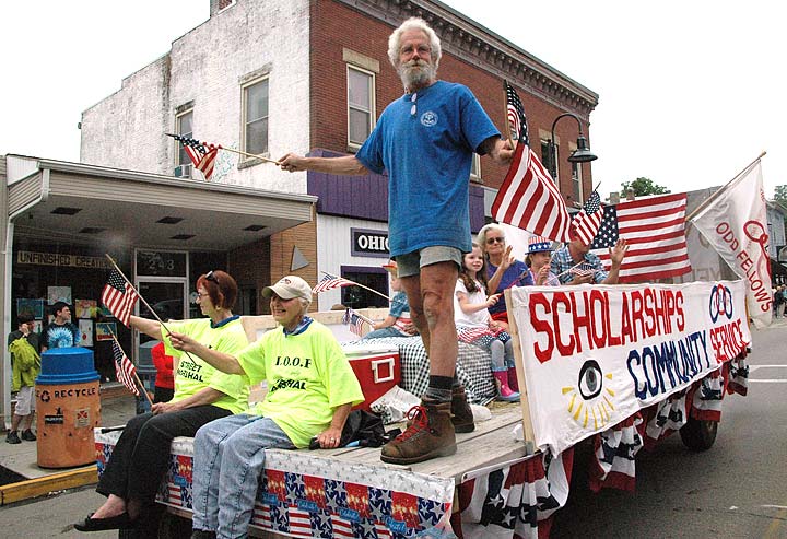 Villagers and visitors didn’t let gloomy skies and the occasional raindrop thwart their Fourth of July on Monday. In the afternoon, the annual parade drew curbside crowds and candy-seekers. And at night the fireworks persevered, creating a gauzy landscape of color, smoke and humidity. (Photos of the march by Diane Chiddister; of the fireworks by Matt Minde)