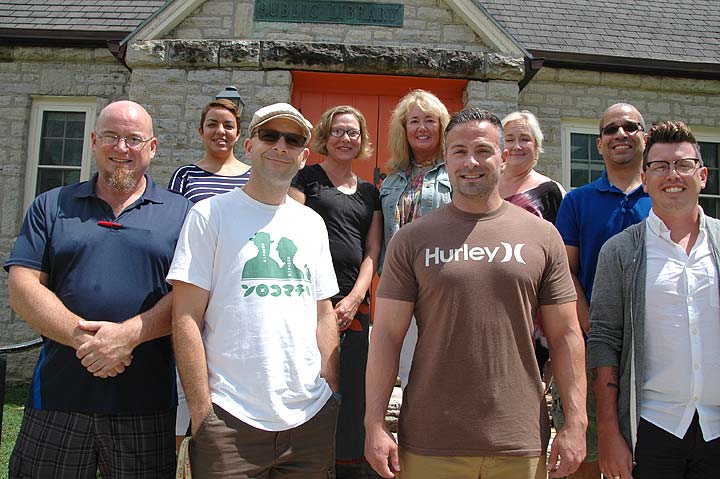 Eight new teachers and the new fundraiser for the Yellow Springs school district took part in orientation activities last week. Front row, from left, teachers Steve Bleything, Kevin Lydy, Robert Grote and Christopher Snider. Back row, from left, district fundraiser Dawn Boyer and teachers Shannon Wilson, Carrie Juergens, Lorrie Sparrow-Knapp and Jaimie Adoff. Yellow Springs students return to school this Friday, Aug. 19. The three new Yellow Springs High School teachers will be profiled in the August 25 issue of the News. (Photo by Carol Simmons)