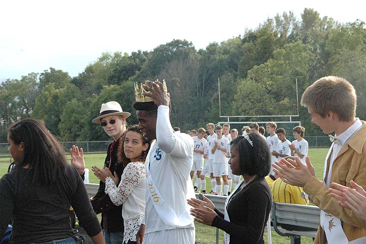 The 2016 Yellow Springs High School homecoming court was feted on Saturday, Oct. 1, just before the boys’ home soccer game against Franklin Monroe. Joe Plumer was crowned king; Christina Banks, queen. Other members of the homecoming court were seniors Aaron Stireman and Shekinah Williams; juniors Peter Day and Aza Hurwitz; sophomores Tristan Burch and Taysha Burch; and freshman Davin Bush and JJ Bledsoe. Students later attended a Great Gatsby-themed dance at the high school. (Photo by Dylan Taylor-Lehman)