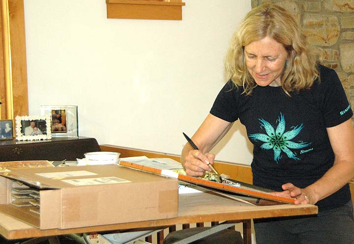 Painter Libby Rudolf is looking forward to opening her home to tour visitors. While she has a dedicated studio space, she works on her bright and colorful watercolors, acrylics and oils throughout her house on Grinnell Road. While she has painted for many years, she has been able to put more time into her work since the last of her three children left for college. A member of Village Artisans as well as the Arts Council, she currently has work on display at the Village Artisans gallery as well as in a one-person show at Seasons Bistro in Springfield. “One thing you won’t find in my work is pain,” she said. “I try to find beauty. I try to share that thing that catches my heart.”