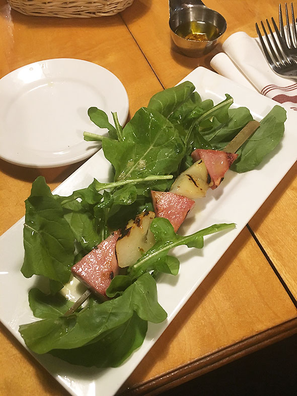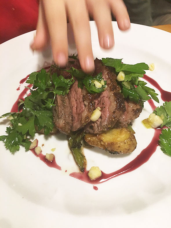 There, I ordered a green salad and the shrimp risotto dish from the al a carte menu. The food was uncommonly good, and I pledged to bring back my family so that they too could store up on the marvelous food. We returned on Thursday evening to indulge in the courses of duck, ham, and shrimp dishes. We left perfumed by the floral, buttery garlic bulbs. The fast was broken, my inner resources restored.