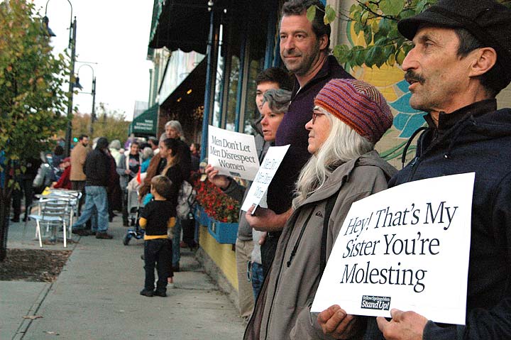 The idea was to keep the demonstration simple, said resident and fellow organizer Jim Klein. The Stand Up! event was intended to be a much more personal and straightforward man-to-man conversation than the average rally.