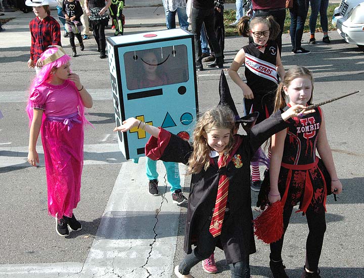 Mills Lawn School’s annual Halloween Parade through downtown Monday brought out the beauty as well as the beast in everyone. The smaller monsters, gnomes, fairies, robots and assorted characters were chaperoned by their older fifth- and sixth-grade “buddies.” At the end, everyone shuffled into the gym for a fantastical assembly of joking, singing, clapping and generally controlled mayhem, before being unleashed a half-hour later to prepare for an evening of trick-or-treating. (Photos by Matt Minde)