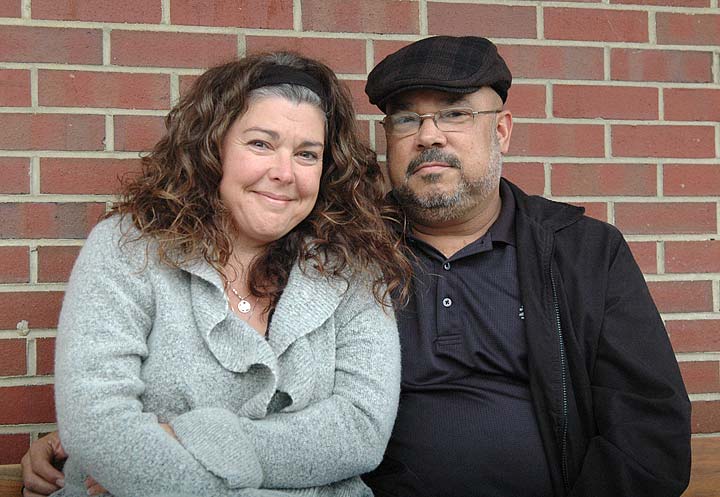 Kelley Fox was diagnosed with multiple myeloma, a rare form of cancer, in August. The Yellow Springs native retired from the Village in 2014 after 30 years of service, most recently as superintendent of electric and water distribution. He also served as an MTFR firefighter for 17 years. Here, he’s pictured with his wife, Christina, outside Tom’s Market, one of Kelley’s favorite local people-watching spots. (Photo by Audrey Hackett)