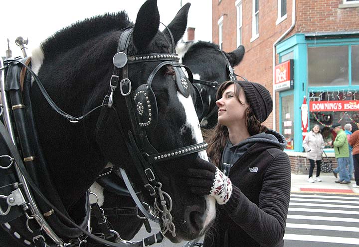 “Yellow Friday,” Yellow Springs’ alternative to Black Friday, had a festive air thanks to sidewalk music, longer shop hours and free horse-drawn cart rides, offered by Horse ‘N’ Around Farm in Vandalia. Villagers and visitors alike opted to travel “once more around the block” — in this case, Xenia Avenue. (Photos by Audrey Hackett)