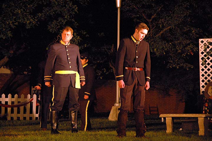 Miriam Eckenrode Saari and Garrett Young danced to sprightly music by the Corndrinkers during a rehearsal of “Much Ado About Nothing.” Presented in July by Yellow Springs Theater Company, the play revived the tradition of Antioch Area Theatre’s 1950s Shakespeare Under the Stars on the Antioch campus. (Photo by Audrey Hackett)
