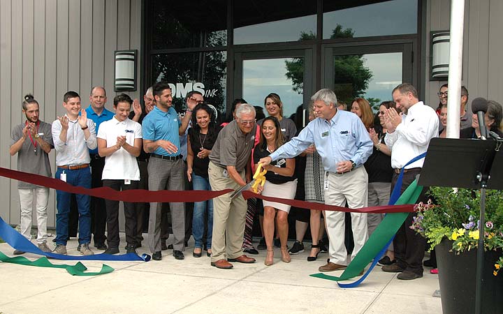 Over 60 people gathered at the grand opening of DMS Ink at 888 Dayton St. in July. The company, which specializes in printing and mailing services, moved the bulk of its operations to Yellow Springs from Dayton last winter. The privately owned company employs around 100 people locally and in Dayton. (Photo by Audrey Hackett)