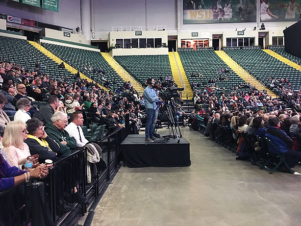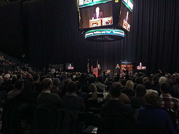 This clear, confident activism has been drawn in sharp contrast to the mass media who seem rather uncertain about their role in this strange new world. On Tuesday, Jeremy and I took our son and daughter to hear Dan Rather speak at the Nutter Center. He had been invited to Wright State University to discuss democracy, politics, and the news as part of the university’s Presidential Lecture Series. He spoke of his history in the news starting with his reporting of the John F Kennedy assassination and continuing through the civil rights era. He had both good news and bad news for us. He reminded us that historically, when America values are assaulted, the American press have been steady as a rock. “We give them cold steel,” he said. However, Rather then reminded us that “A president has tremendous behind-the-scenes power to punish and intimidate the press… Resistance is both difficult and essential.”