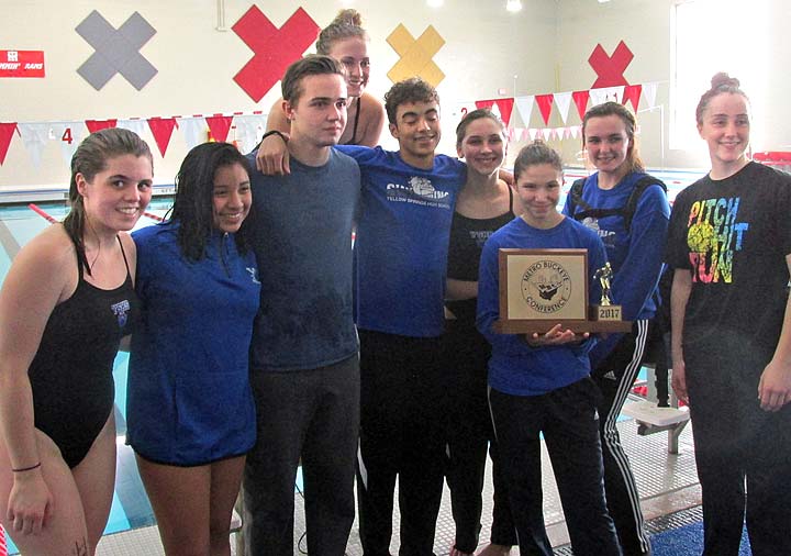 “We are the champions!” YSHS swim coach David Hardwick exclaimed. “Two back-to-back conference wins — this is a new record! So much to be proud and happy for. Did we have fun and still work hard for this win? YES! We stepped up and swam well, and we scored big!”