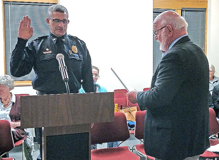 Carlson took the oath from Mayor Dave Foubert, who told Carlson that he “stands in a line of” community-minded police chiefs that includes Chief Jim McKee and Chief John Grote.