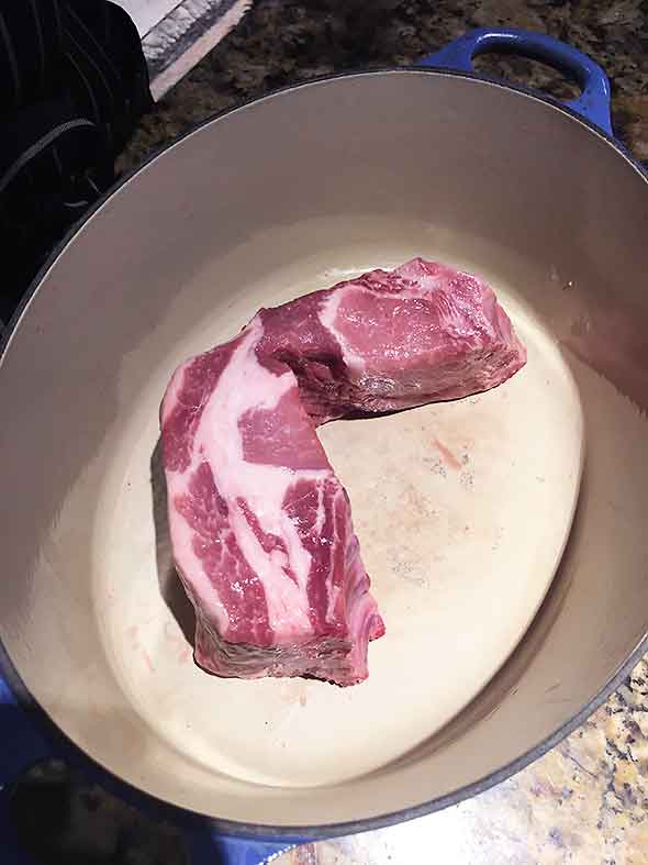 Among the cuts that we recognized…bacon, ham, pork shoulder, steaks, and chops…we had found something called a country pork rib. We looked at each other and shrugged. Perhaps we had eaten one before but we had never prepared one.