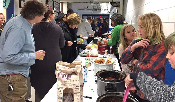 Twenty people submitted sumptuous entries to this year’s McKinney Middle School Chili Cook-off, held Saturday, Feb. 25. The annual fundraiser garnered $948 this year for the eighth-grade trip to Washington D.C. Winner in the adult category was Kim Meier, while the student winners were siblings Bobby and Morris Wyatt, pictured above with rival Zan Holtgrave, who not so sutbly insisted the boys refrain from betting on winning. The People’s Choice Award went to eighth-grader Sam Lewis.