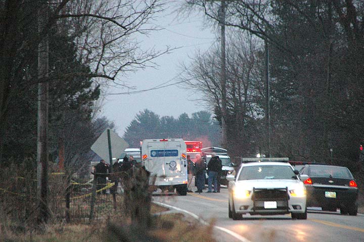 Local police and county sheriff cars at the scene on Jan. 15, when William "Skip" Brown and Sherri Mendenhall were found shot and killed at their adjoining East Enon Road apartments. Today the Greene County Prosecutor's office announced that a grand jury has indicted the brothers Dustin and Bret Merrick for aggravated murder, among other charges, in the case.