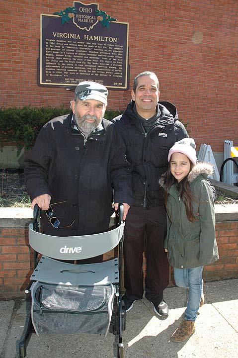 A crowd of local students and community members converged on the Yellow Springs library last Wednesday, March 22, for the dedication of a historical marker for renowned author Virginia Hamilton, who grew up and lived most of her life in Yellow Springs. The Hamilton marker was initiated in a 2014 project of a Dayton Regional STEM school class taught by Kevin Lydy, who now teaches at Yellow Springs High School, and is one of six markers in the area approved by the Ohio History Connection. Funding for the Hamilton marker was provided by the Yellow Springs Community Foundation and the Greene County Public Library.
