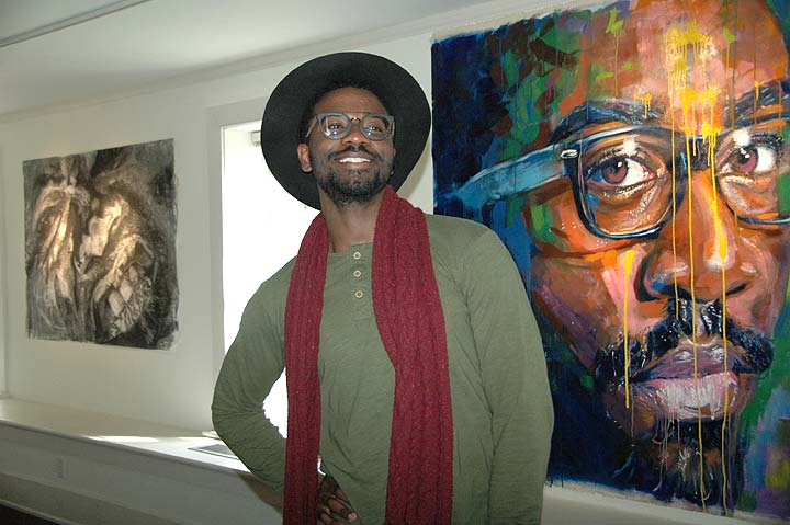 Antioch College’s Herndon Gallery is hosting “Schizomaica,” a show by Jamaican-born artist Kamar Thomas, currently visiting assistant professor of visual arts at Antioch. Up for a few more weeks, the show features 19 works in oil and charcoal, including “Selfie 3,” pictured here at right. A reception and painting demonstration will be held on Thursday, April 20, from 7 to 9 p.m. (Photo by Audrey Hackett)
