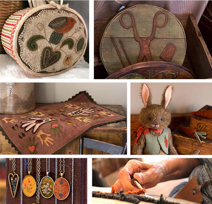 “From Our Hands and Hearts,” an annual creative retreat for needlework artists, is coming to Yellow Springs April 24–27. Organizers are Lori Ann Corelis, a folk artist who sews rabbits, teddy bears and other collectibles, and Rebekah Smith, a wool appliqué artist. The public is invited to a show and sale on the last day of the retreat, April 27, from 1 to 4 p.m. at Mills Park Hotel. (Submitted photos)