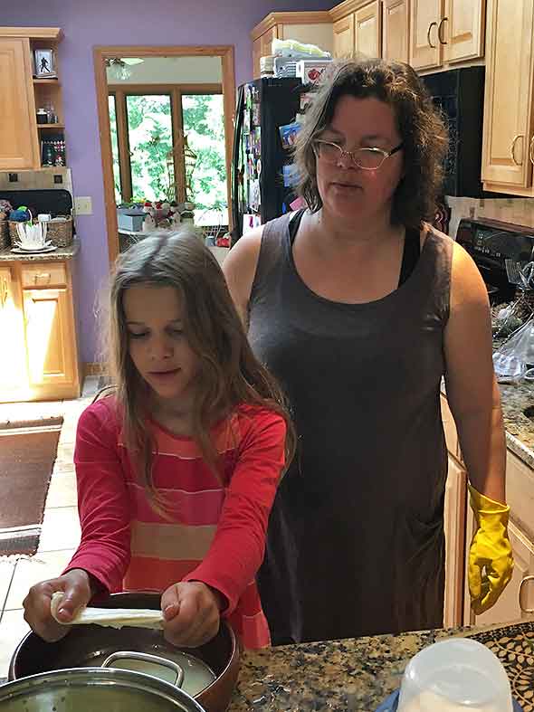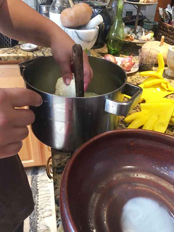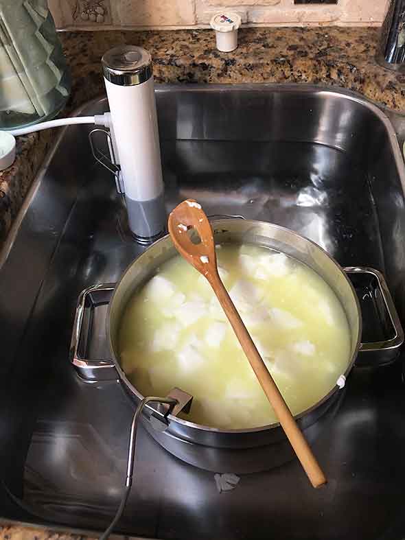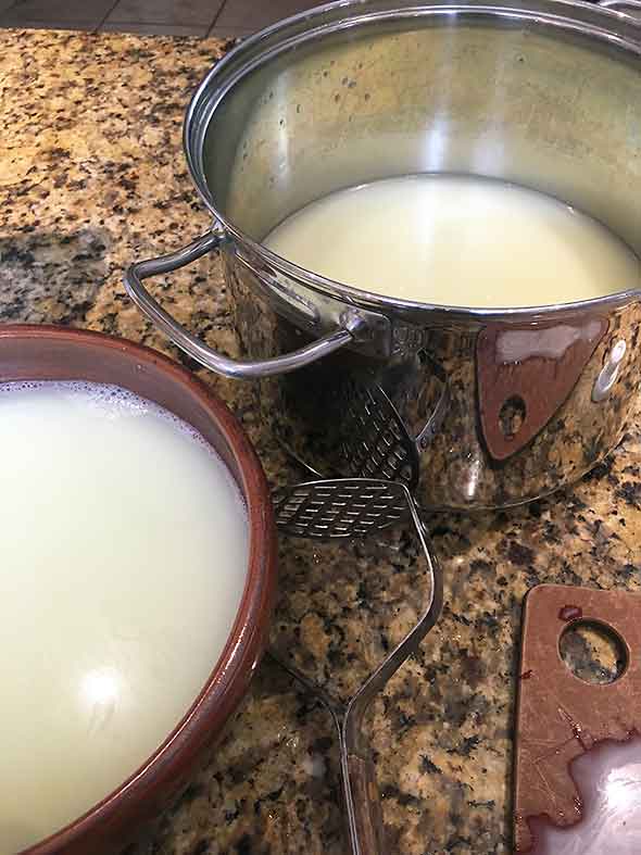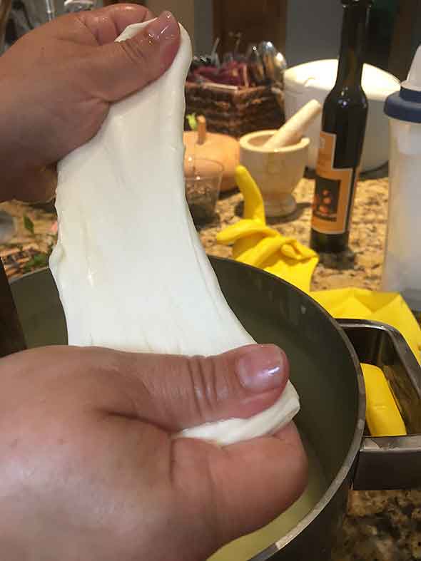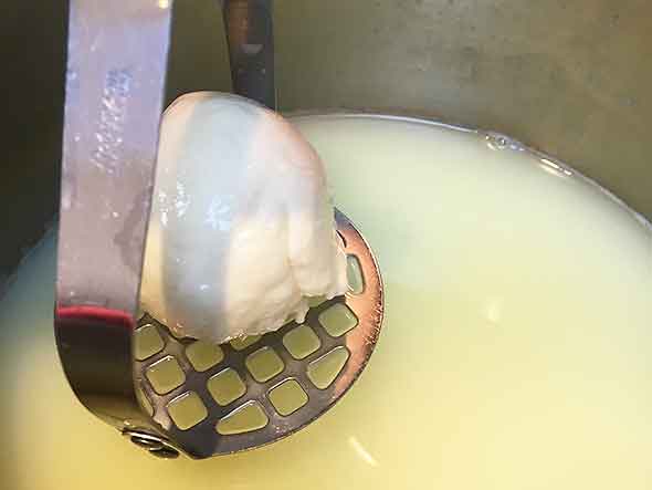 My daughter and I made mozzarella for lunch on Friday. We curdled a gallon of goats milk by adding citric acid, heat, and a powerful enzyme called rennet.