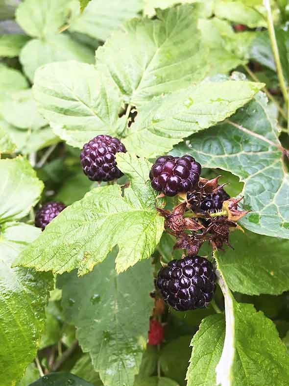 Preparing a Father’s Day brunch, I went out in the gardens. There, fed by the week’s much needed rain storms, our raspberry bushes have sprung life full of bright red berries. The bushes had struggled producing tiny beaded fruit at first but now, with the refresh of water, they are exploding with juice.