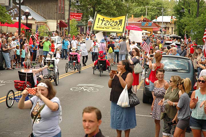 Clouds threatened rain, but that didn’t stop hundreds of villagers who lined Xenia Avenue downtown Tuesday for the annual Fourth of July parade. The parade featured political activists, actors, swimmers, church-goers, puppeteers, Boy and Daisy Scouts, vintage cars, law enforcement officers and random villagers who just wanted to dress up, or dress up their bikes or pets. See more photos of the parade and fireworks here.