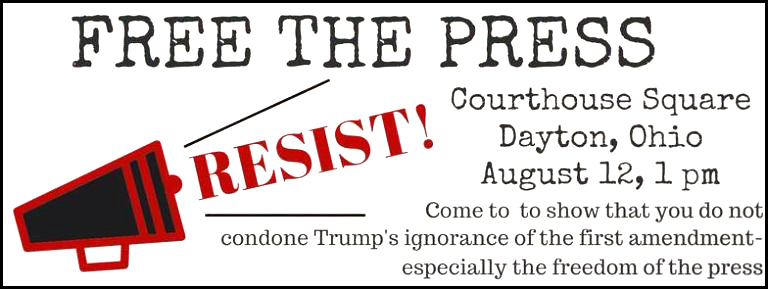 On August 12, right around the time that a car was plunging into a crowd of people in Charlottesville, a car with an Ohio license plate and an Ohio resident behind the wheel, I found myself taking the stage at the “Free the Press Protest” at Courthouse Square in downtown Dayton. The crowd was sparse–a beautiful Saturday afternoon found Yellow Springs busier than just about any other location in the Greater-Dayton area–but enthusiastic. We did not yet know of Heather Heyer’s brutal death, but our minds were on Nazis as much as they were the need for a free press.